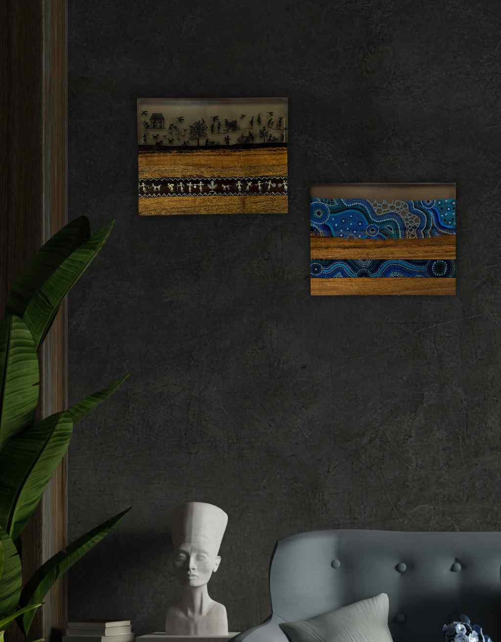 Our wall painting is one of our most ethereal creations that signifies how even everyday items can be artfully created for spaces. With the Aboriginal bush medicine style, we have given it our own spin to blow a breath of fresh air into a space.